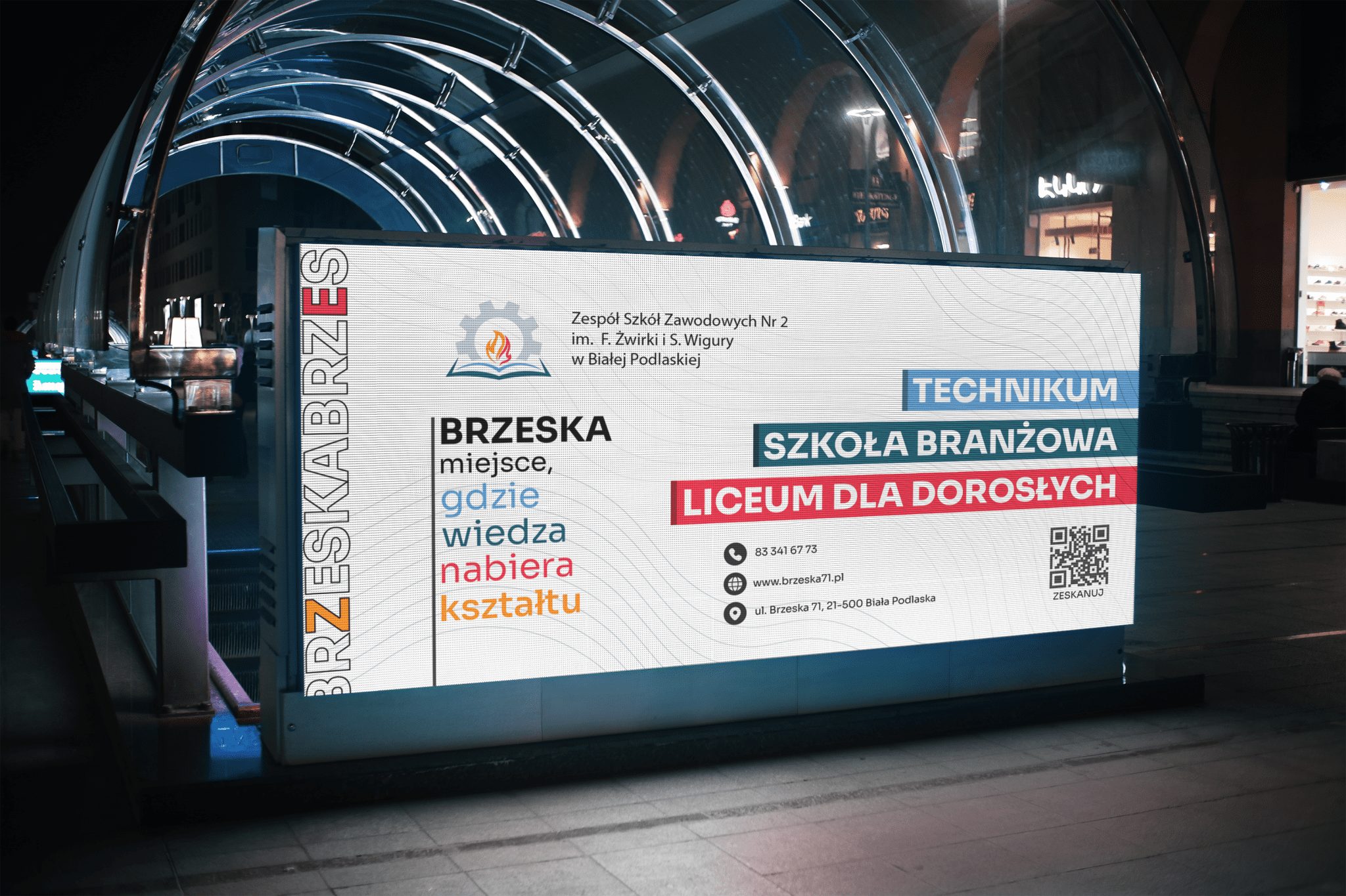 Mieliśmy zaszczyt pracować nad wielkim projektem rebrandingu dla Zespołu Szkół Zawodowych Nr 2 w Białej Podlaskiej. Nasza praca skupiła się na odświeżeniu wizerunku instytucji, dostosowaniu do współczesnych standardów i podkreśleniu unikalnych cech szkoły po przez nowe logo, banery, plakaty oraz wszelkiego rodzaju materiały promocyjne.
